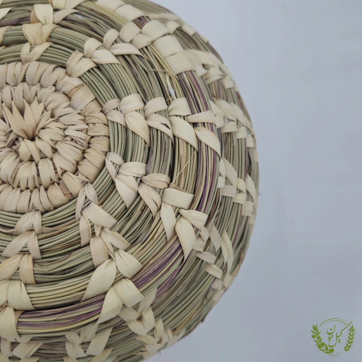 • درب حصیری هماهنگ: درب این بانکه نیز از همان بافت و الیاف ساخته شده که به خوبی روی ظرف چفت می‌شود.